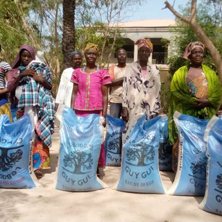 Live and smile for my people have distributed 45 bags of rice to forty five families in Gunjur earlier on Tuesday, 13th April 2021.